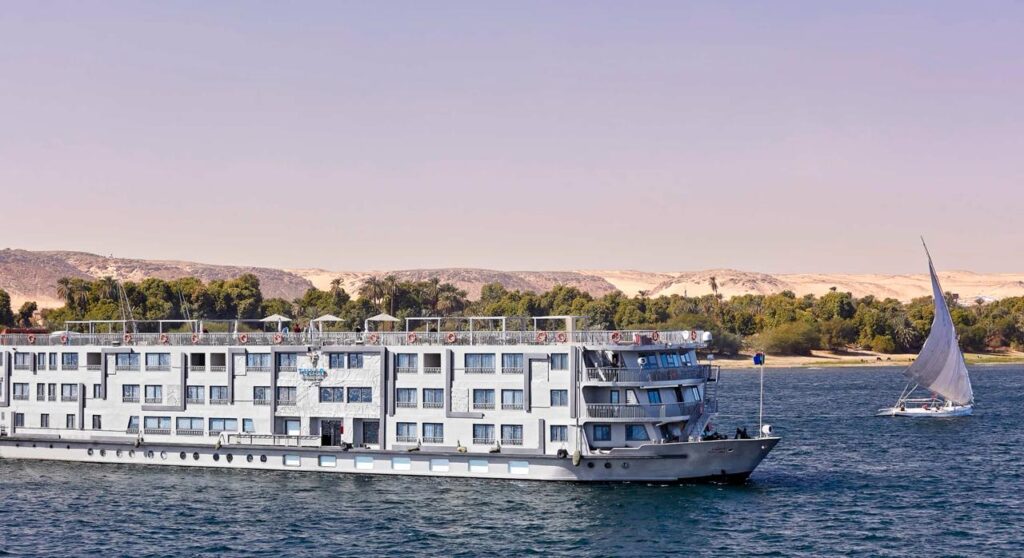 Amwaj Nile Cruise, enjoy the river Nile surrounded by a historical atmosphere with a five-star deluxe Amwaj Nile Cruise service. Amwaj Nile Cruise boat is