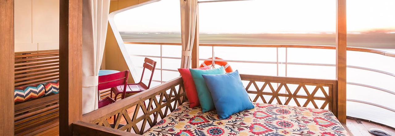 The M/Y Alyssa was designed by Swiss architect Pia Schmid, a specialist in hotel design known across Europe for her creative projects. Her vision for the Alyssa combined harmony in colors, inspiration from the ship’s surroundings, and handcrafted details with an eco-friendly approach. Every element—from furniture and cabin layouts to pure wool carpets—was created exclusively for the Alyssa, making it a one-of-a-kind cruise ship on the Nile.