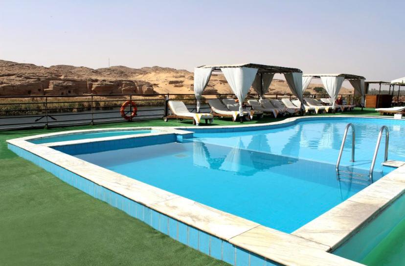 The M/S Nile Dolphin is a 5-star deluxe cruise that sails between Luxor and Aswan. Launched in 2007, it blends classic style with modern comfort. The ship has 63 cabins and 2 suites, plus a restaurant, lounge, bars, and a sun deck with pool and Jacuzzi. Guests can also enjoy a gym, business center, boutique, and gift shop. After exploring temples and monuments, relax on board with fine dining, drinks, and all the comforts of a modern hotel.