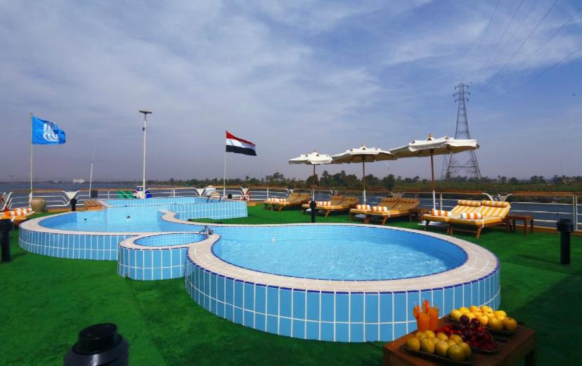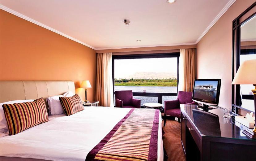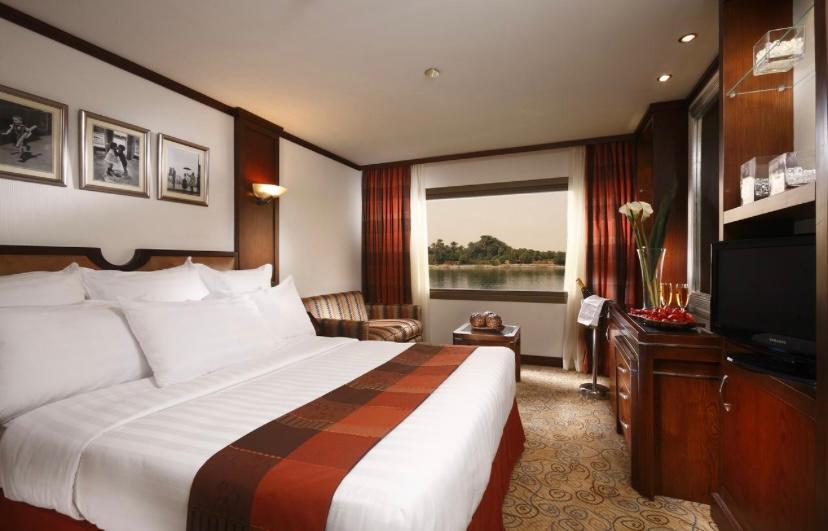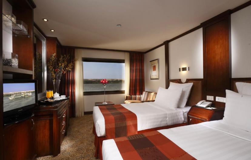 The ship features outward-facing cabins with panoramic views, interconnecting options for families, and a wide range of facilities. Guests can enjoy an open-air swimming pool, spa, gym, nightly entertainment, and even an onboard disco. Spacious living areas and personalized service make your journey an unforgettable experience in the Land of the Pharaohs.