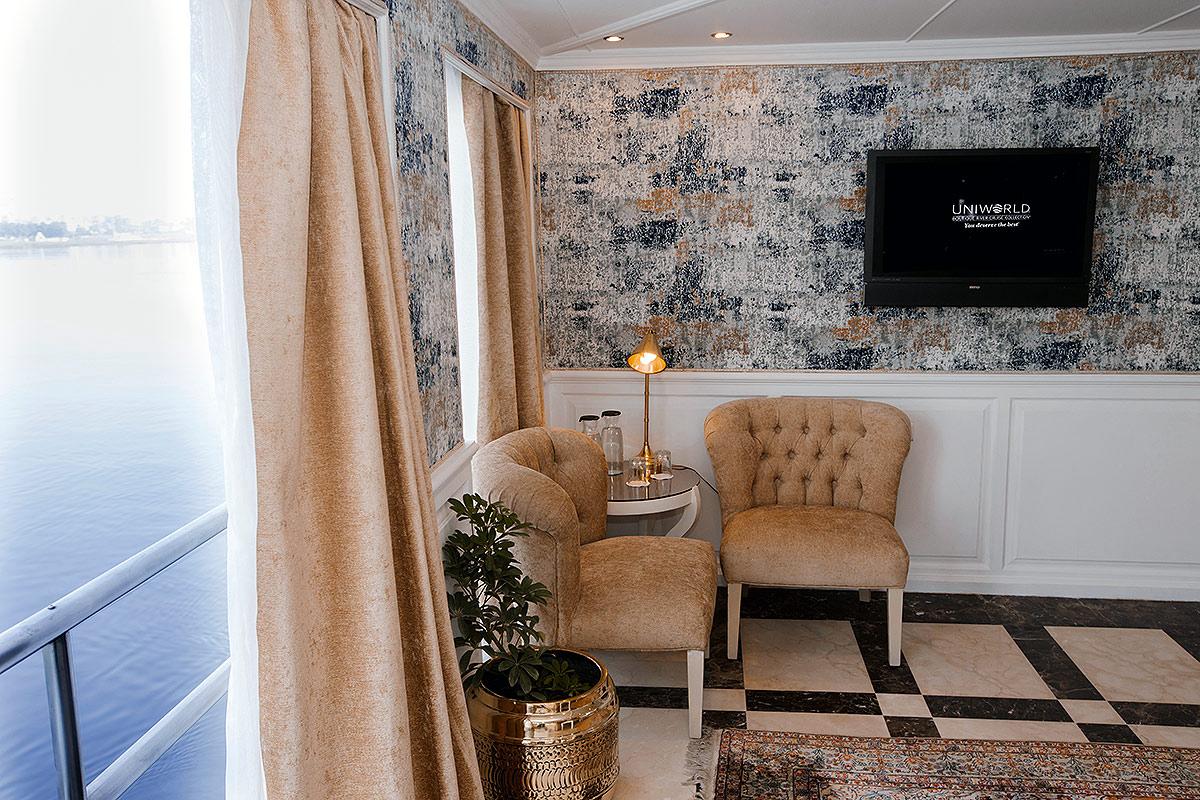 Launched in 2009, the M/S Tosca Nile Cruise combines timeless elegance with modern comfort. Designed by the acclaimed team behind the award-winning Red Carnation Hotel Collection, the ship features rich wood paneling, original artwork, and spacious suites that redefine luxury on the Nile. With its refined décor and contemporary amenities, the Tosca offers a truly sophisticated cruising experience.
