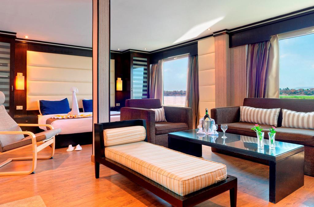 The MS Nile Premium Cruise, launched in 2008, is one of the most elegant ultra-luxury ships sailing the Nile. Designed with neutral tones and dark wood for a classic Colonial touch, it combines sophistication with warmth. Modern, stylish, and equipped with the latest comfort and safety features, the Nile Premium offers guests an atmosphere that is both luxurious and welcoming, perfect for exploring the timeless beauty of the Nile.
