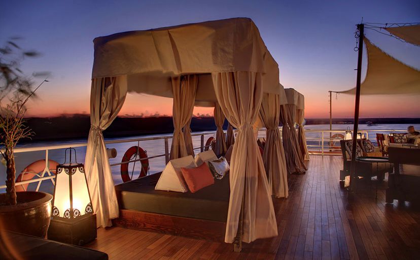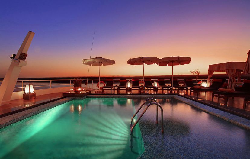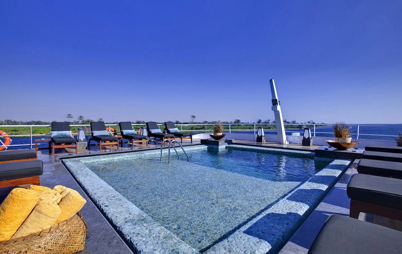 Sail the Nile in elegance aboard the Sanctuary M.S. Nile Adventurer, a boutique 5-star cruise with just 32 cabins designed for privacy and comfort. Blending modern Egyptian style with timeless heritage, it offers gourmet dining, expert-guided excursions, and serene moments on a spacious sun deck with private cabanas by the pool.