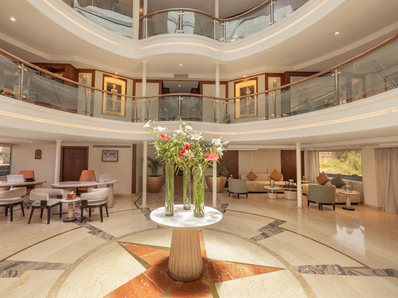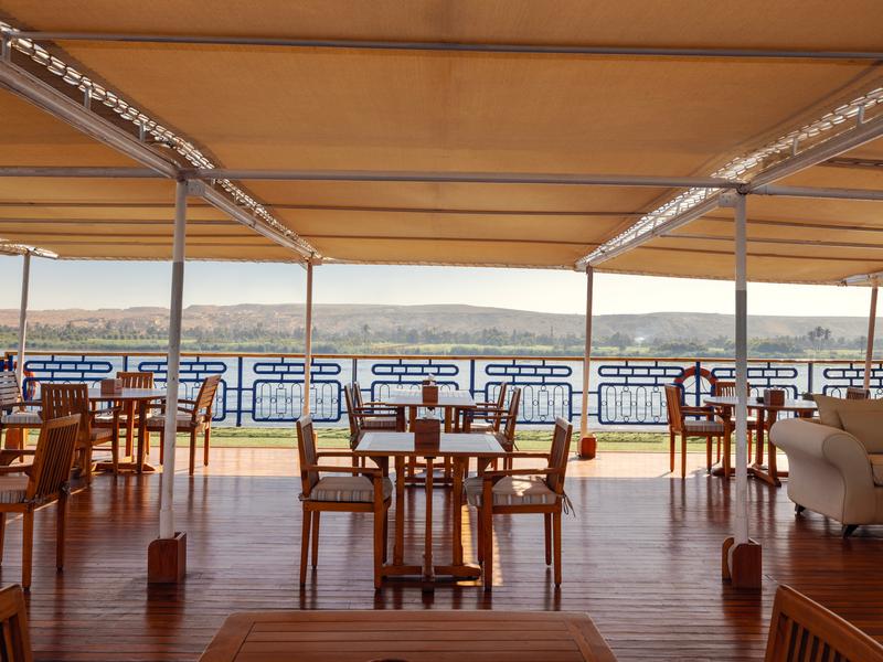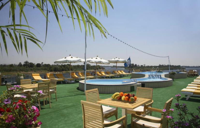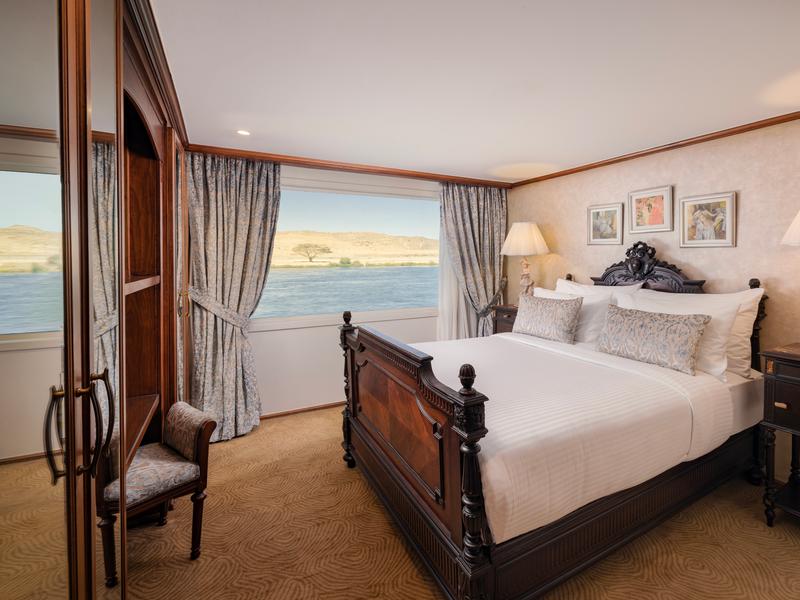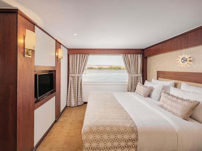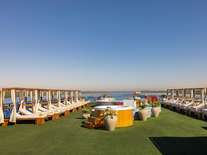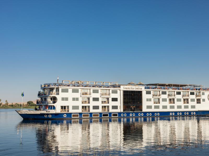 The Sonesta Star Goddess Nile Cruise is a modern luxury ship sailing between Aswan and Luxor. It features 33 spacious suites, each with a private balcony and named after famous composers for a touch of elegance. The ship includes 27 deluxe Beethoven Suites (40m²), 4 Mozart Suites (35m²), and 2 superior Chopin Suites (52m²). All suites are non-smoking, with smoking allowed only in open areas.