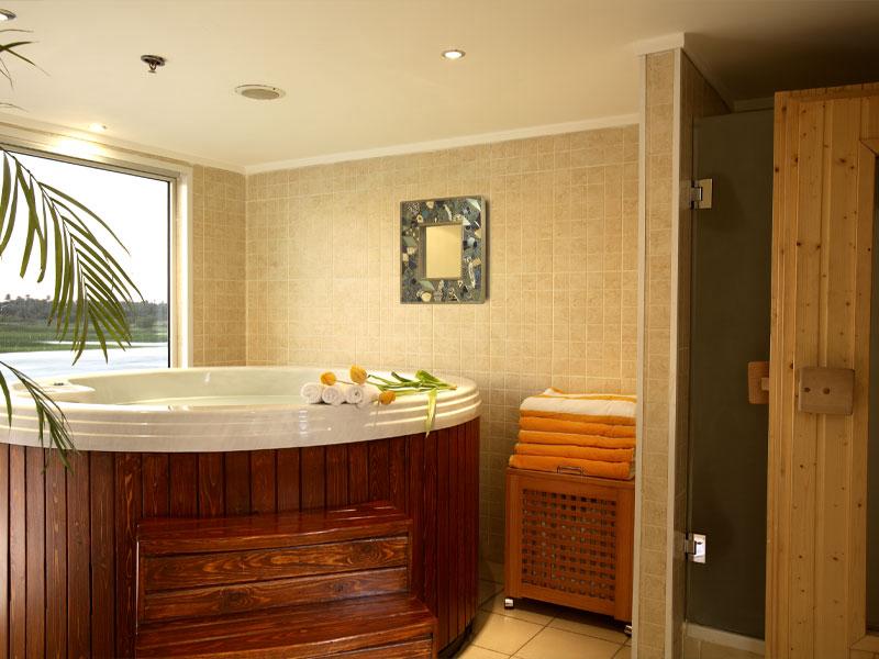 - Spa and fitness center with gym, massage services, sauna, and steam bath