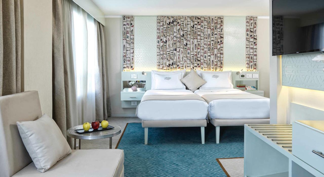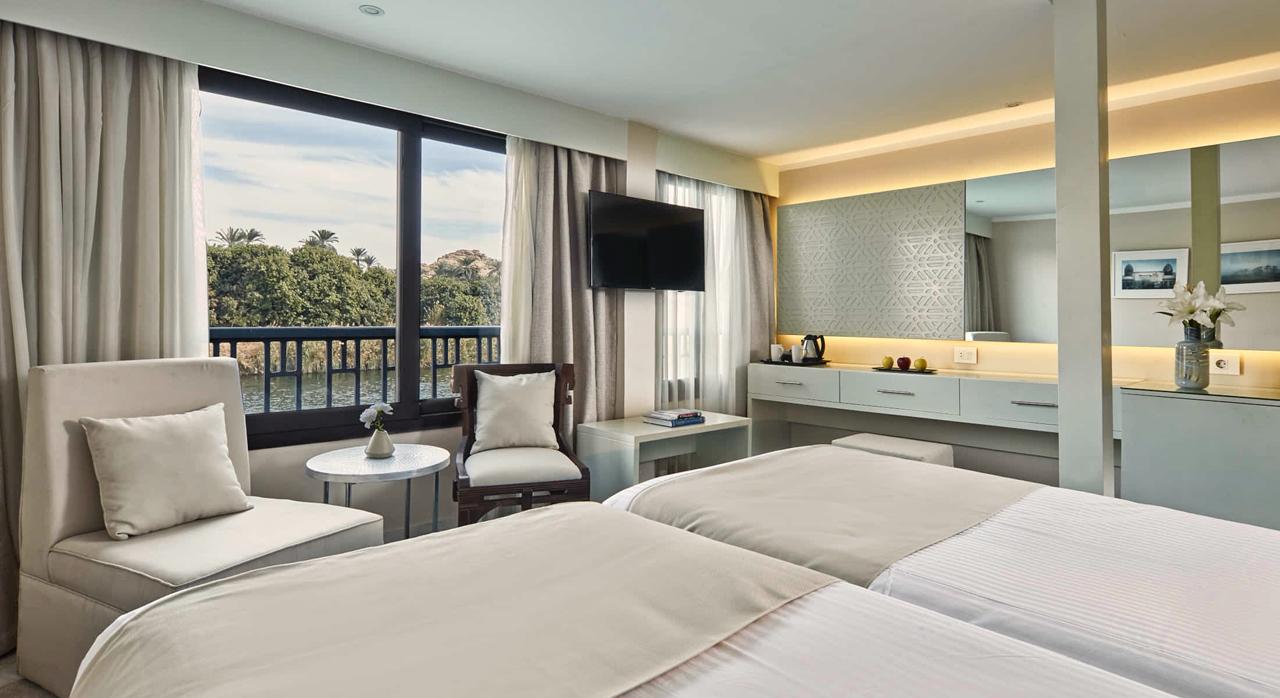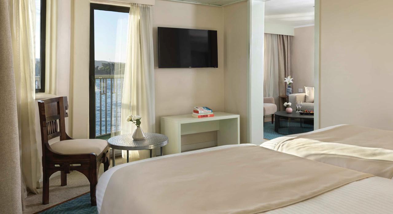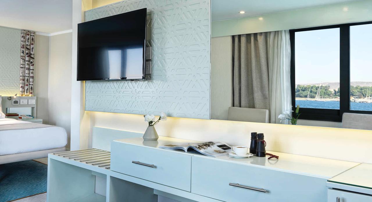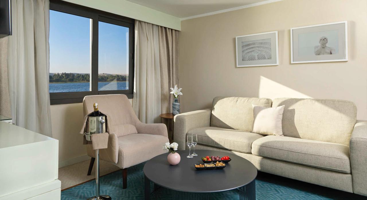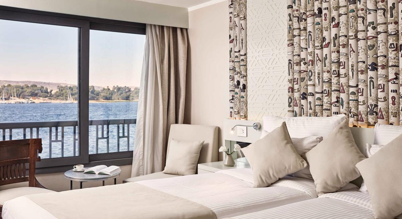 The MS Tulip Nile Cruise is an excellent choice for those who want to explore the Nile in comfort. Recently refurbished, the ship combines a modern design with a cozy atmosphere. It features 40 cabins with panoramic windows and Juliet balconies, plus 8 spacious Terrace Suites with private sit-out balconies. For solo travelers, there are also 2 single cabins on the main deck with standard windows, offered with no single supplement.